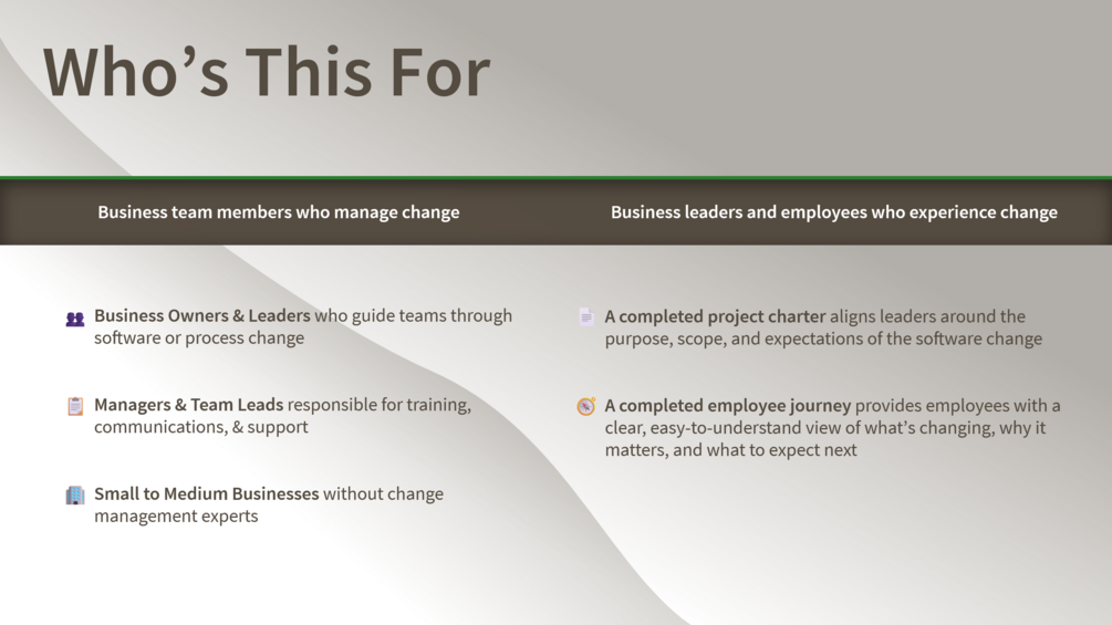 - SMB leaders, HR managers, and project owners leading software rollouts