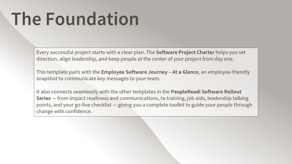 Explore the complete PeopleReadi Software Rollout Series to guide your team from planning through go-live with a full set of templates designed to work together.