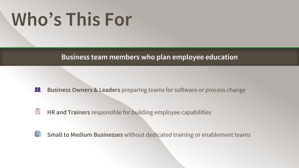 This template helps you plan training intentionally — so people know what they need to learn, when training should happen, and how learning supports successful adoption.
